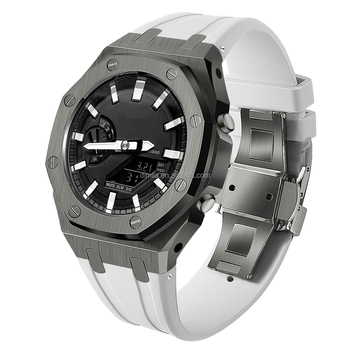 Pour Ga2100 316L Remplacement En Acier Inoxydable Gris Boîtier Bracelet De Montre En Silicone pour Montre Ga2100 Bracelet De Montre-Bracelet